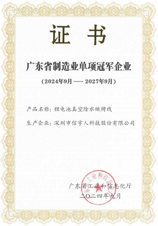 太阳成集团tyc凭借此前申报的“锂电池真空除水烘烤线”智能制造装备,被广东省工业和信息化厅授予广东省制造业单项冠军企业荣誉。